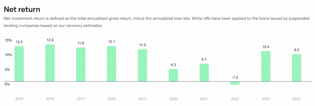 This means that investors here are even lagging behind Bondora, where an average of 6.75% was achieved over the same period (interest rates were only reduced from 6.75% to 6.0% in 2025).