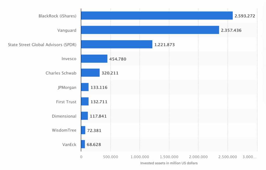 The ETF market is dominated by a few large providers such as BlackRock and Vanguard. In the long term, this concentration could lead to these companies gaining market power and costs rising for investors. This could be because issuers exploit their dominant market position to your disadvantage.
