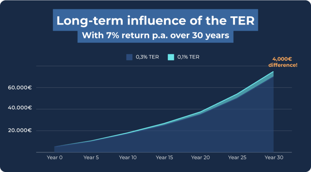 An example: With a TER of 0.2%, an investment of €10,000 per year incurs €20 in fees.