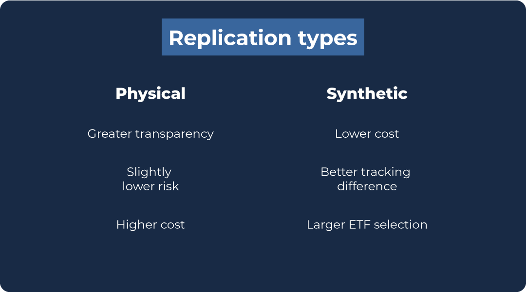 Synthetic replication is an advanced method of ETF replication that differs significantly from physical replication.