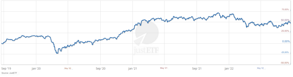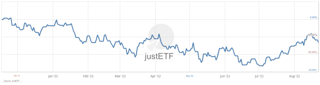 So far, this ETF for electromobility only has €2.5 million under management – but it was only launched in January 2022! Since then, it has already achieved an attractive return. However, the comparatively high costs of 0.68 per cent per year must also be taken into account.