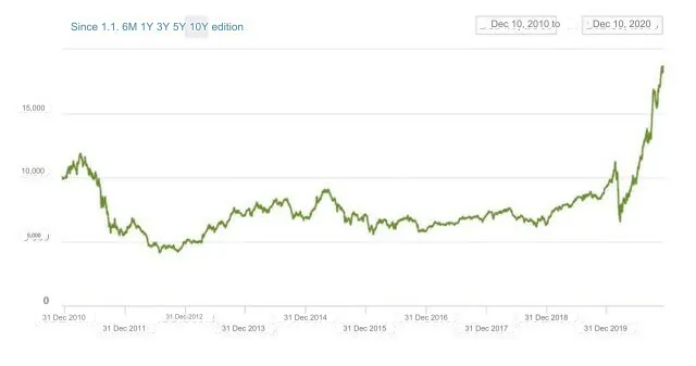 These include stocks such as Siemens Gamesa and Vestas, which, however, also have annual fees of 0.65 %. The performance is also not outstanding: after 9 rather lean years, there was only a noticeable upturn in 2019.