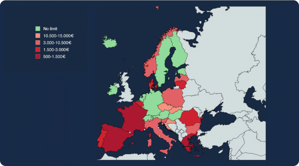 At the same time, many EU countries are continuing to lower their upper limits, and from 2027 onwards, the €10,000 limit will apply across the EU.