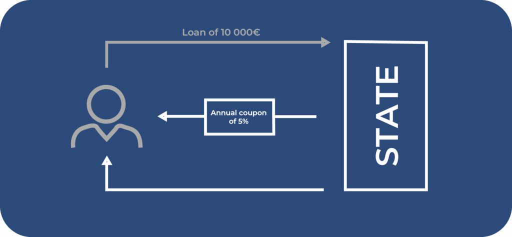 - In principle, government bonds function like lending for the state. Private investors lend money to the state so that it can finance itself.