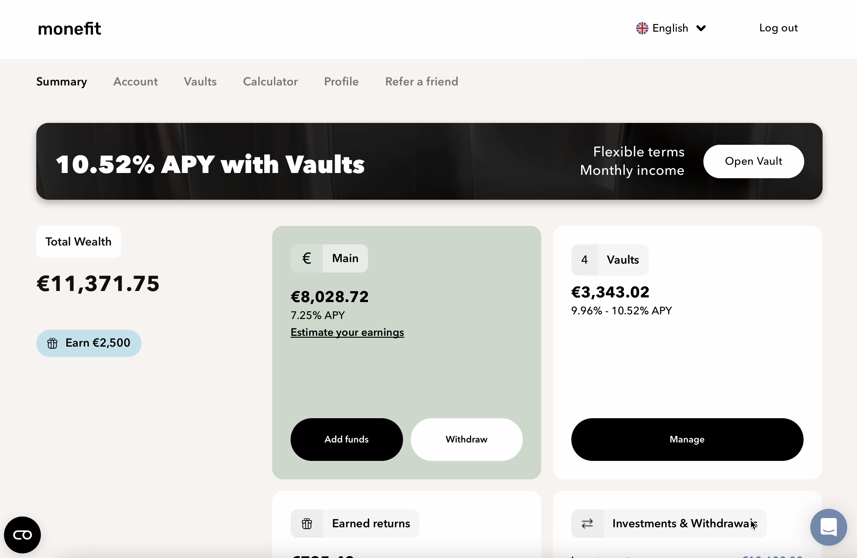 The second investment product is the so-called Vaults: they offer you higher interest rates, but also tie up your capital for longer and are therefore comparable to a fixed-term deposit account. They fit very well into Monefit’s product range, as it now offers alternatives for both instant access and fixed-term deposits!