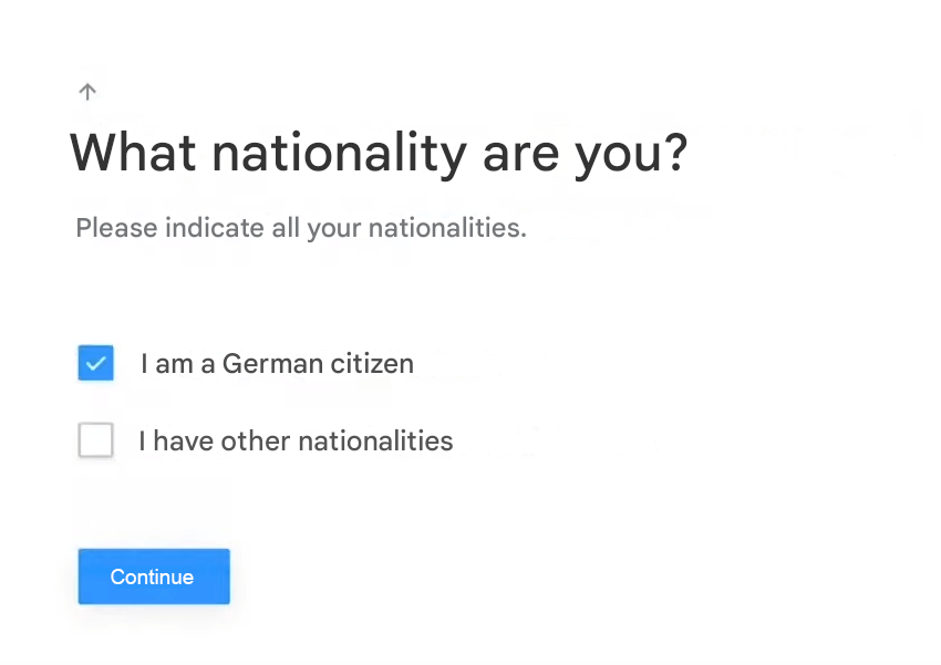- You will then need to enter your personal details. Your surname, first name, email address, date and place of birth, and nationality are required. For tax purposes, you must also confirm that you are not a US citizen.