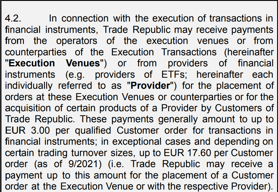 TR itself states that this amount ranges from €3.00 to €17.60 – depending on the size of the order. From the customer’s point of view, there is nothing wrong with this practice: the bonus payment is a private arrangement between the stock exchange and the broker and is not accessible to investors. We therefore do not lose any money as a result of this behind-the-scenes arrangement.