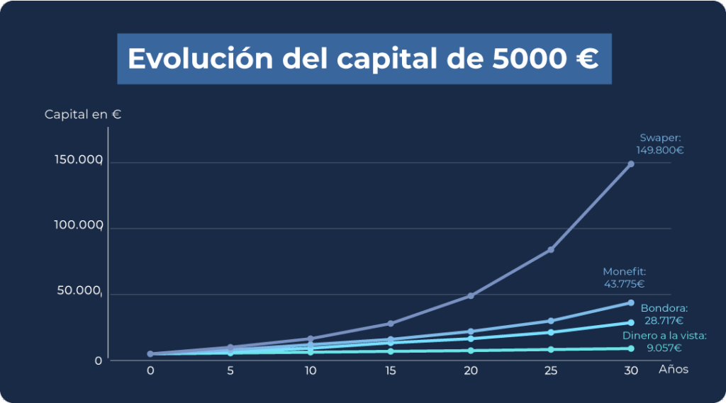 Consideremos, por ejemplo, una inversión de 5000 € durante un periodo de 30 años: