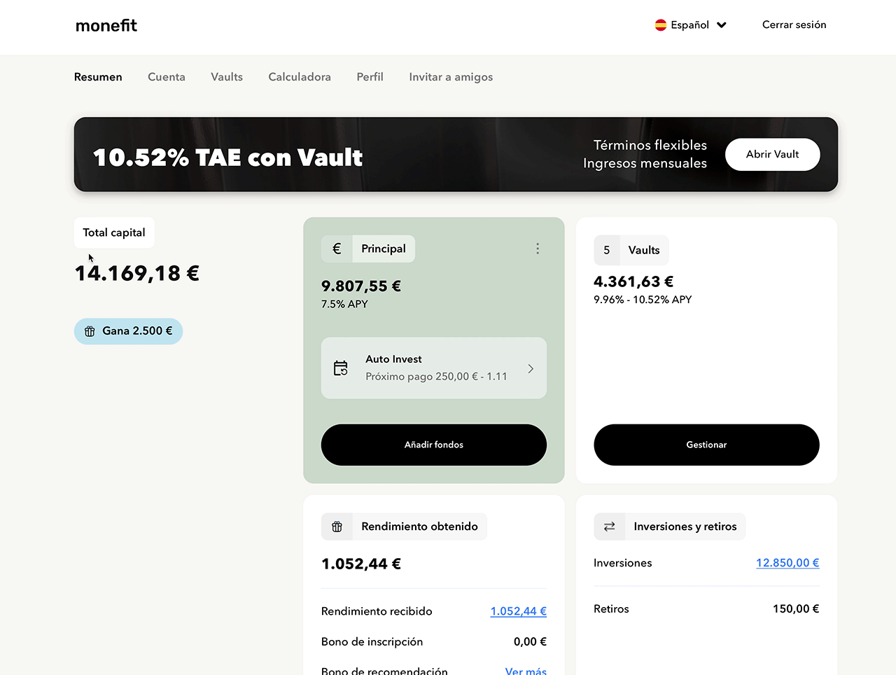 Monefit: Hasta un 7,5 % de rendimiento anual
