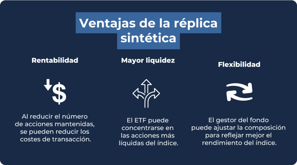 - Réplica muy precisa del índice: A menudo, menor diferencia de seguimiento que en los fondos indexados físicos.