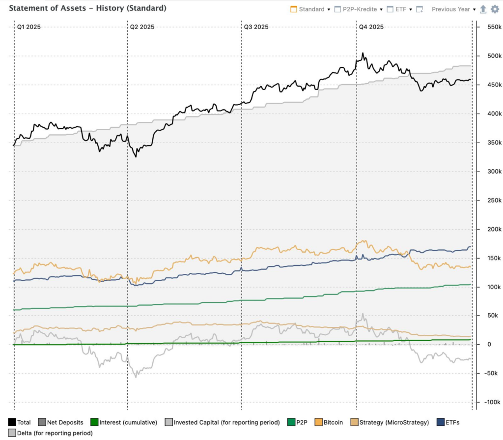 El año pasado seguí invirtiendo una cantidad considerable, 11 500 € al mes, aunque algo menos que en 2024. Así, mi cartera siguió creciendo en 2025 hasta alcanzar un total de 462 000 €.