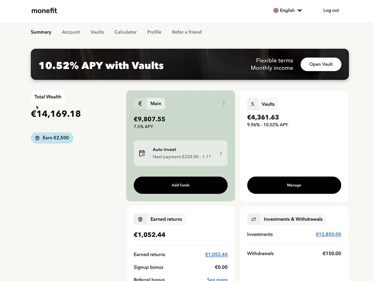 - Moderno e intuitivo: presentazione chiara, dashboard intuitivo e gestione rapida di Smartsaver e Vaults.