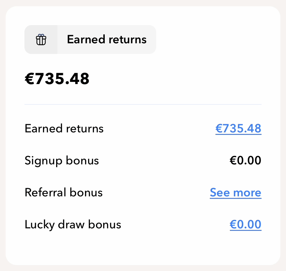 Heb je mijn link voor registratie gebruikt, dan ontvang je bovendien direct €5. Daarbovenop komt nog 0,5% extra rente, die je na 90 dagen in één keer wordt bijgeschreven.