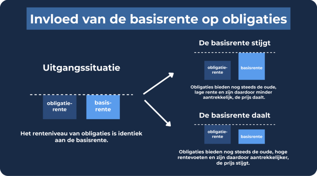- Hoe hoog zijn de actuele beleidsrentes? De rente op obligaties wordt bij uitgifte vastgelegd op basis van het dan geldende renteklimaat en blijft tot de eindvervaldag onveranderd. Dalen de beleidsrentes, dan worden bestaande obligaties met een hogere vaste rente aantrekkelijker. Stijgen de beleidsrentes, dan worden bestaande obligaties minder interessant, omdat ze nog de lagere, eerder vastgelegde rente uitkeren.