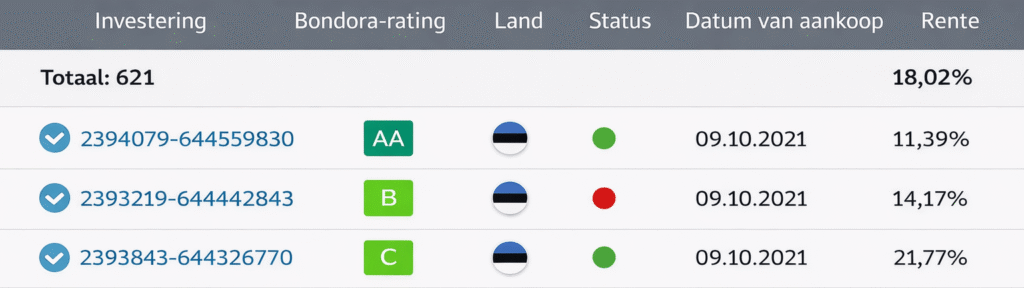 Twee jaar later, in 2021, daalden de rentes bij Bondora al door de hogere inflatie van 3,1%. Beleggers kregen toen nog slechts 3,65% rente op hun investeringen.