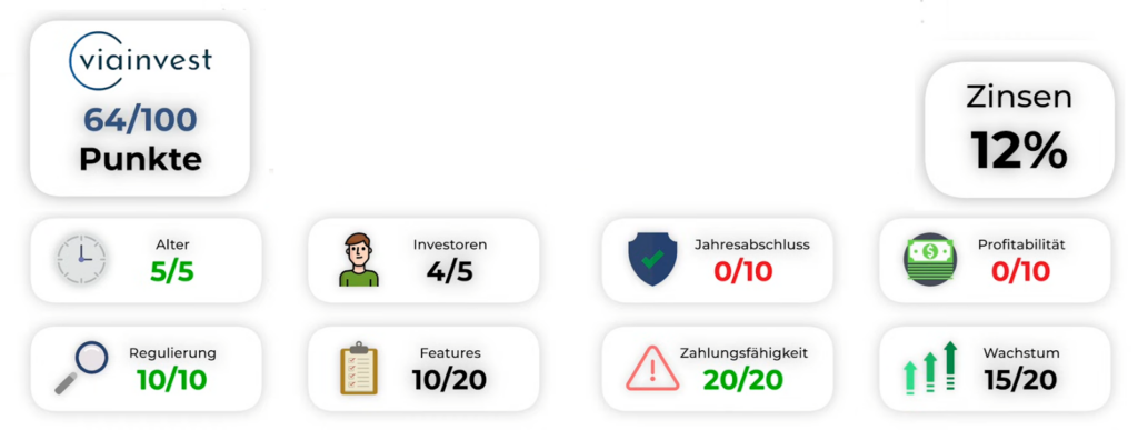 Besonders hervorzuheben sind die sehr gute Transparenz und die zuverlässigen Rückzahlungen. Leider wurde der aktuelle Jahresbericht noch nicht veröffentlicht, sodass hier viele Punkte verloren gehen: Zur Profitabilität lassen sich damit nämlich auch keine Aussage machen!